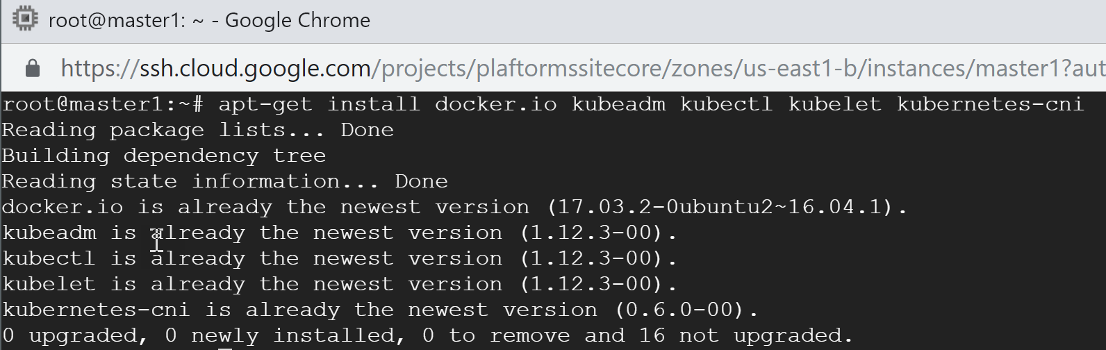 This bit is a bit of an OS-specific (as I’m using amd64 xenial image built on 2018-11-14 in GCP). The rest is less. Now let’s install all those packages we were talking about. You can do this with one command: