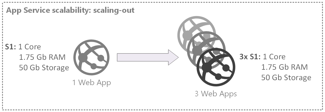 - When using ‘Scale-out’ whether it’s based on metrics or the instance count increased to a specific number, keep an eye on the instances count as they add up to the cost of the service (so the monthly bill is not a surprise to you). Do not forget about implementing ‘scale-in’ rules (if you scale out based on a metric) as the instance count is not reduced on its own