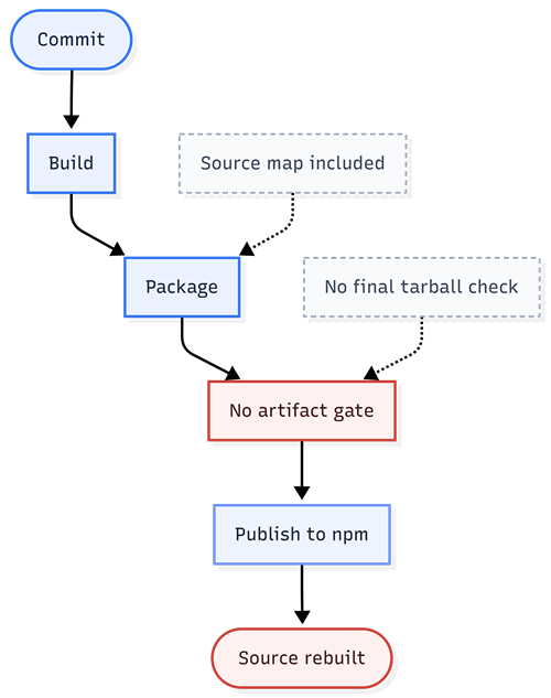 The deeper root cause sits in the release chain. Packaging is often treated as a boring last step, something the build system more or less handles on its own. That works right up to the moment it does not. Public registries do not know which files are harmless and which are dangerous. They will distribute whatever your pipeline hands them. If your process does not whitelist what is allowed to ship, scan the final tarball, and block debug artifacts at publish time, then a mistake like this is not a black swan. It is backlog debt waiting for a trigger.